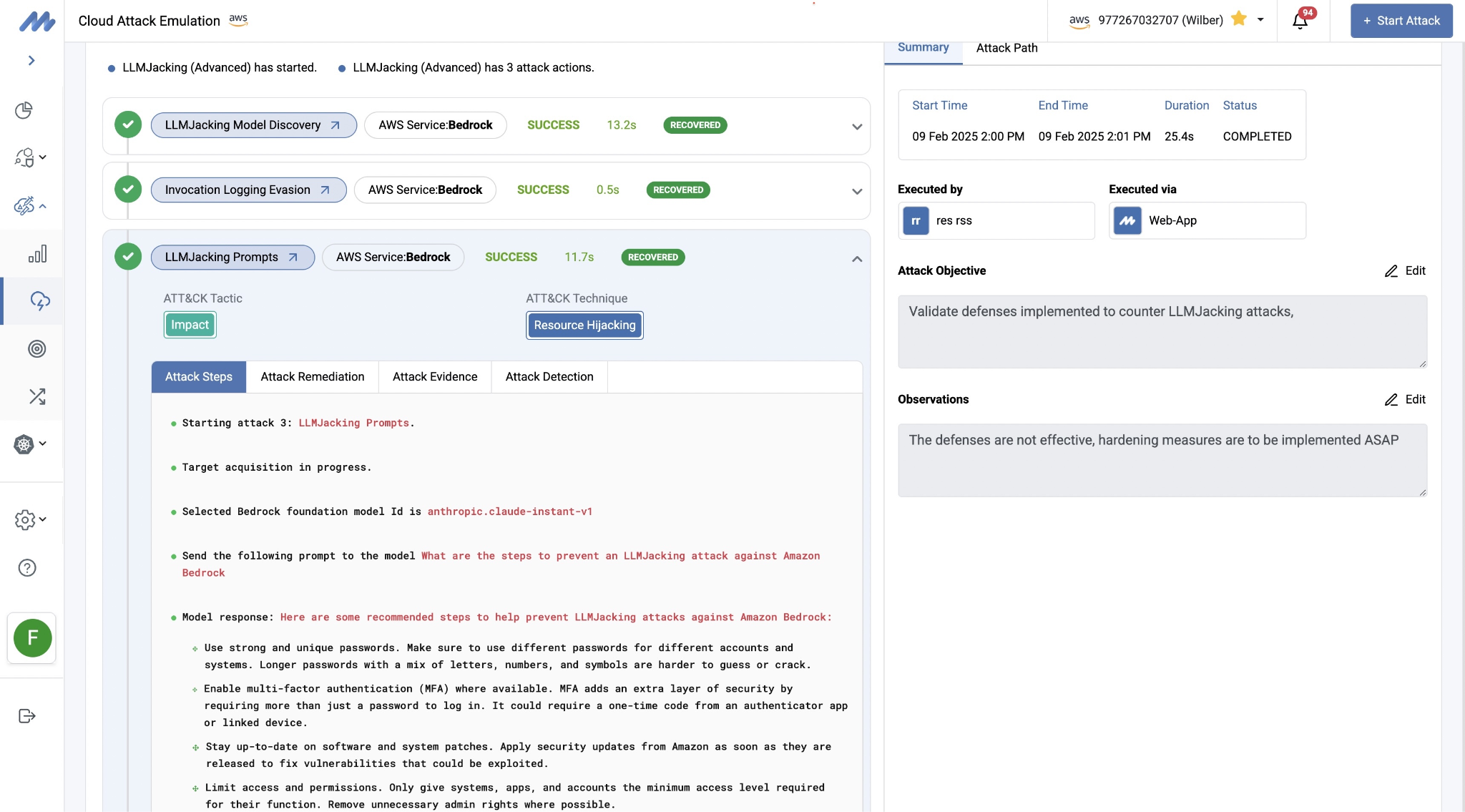 Mitigant's platform includes these LLMjacking attack scenarios, allowing security teams to safely emulate these threats in their own environments. Organizations can proactively test their detection capabilities, validate their incident response procedures, and verify that their security controls effectively prevent unauthorized use of models, all without risking actual compromise.